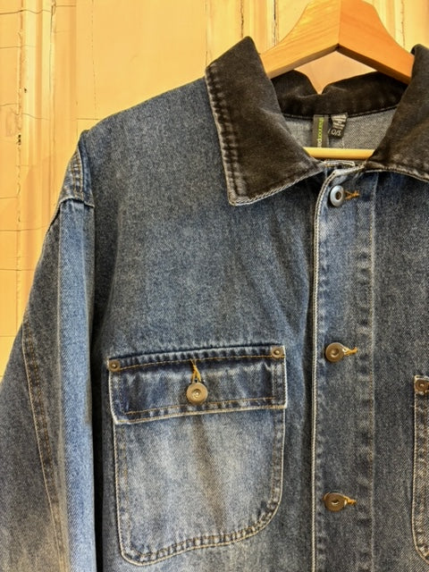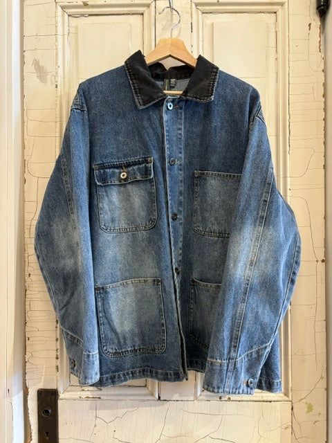Timeless. Effortless. Essential. The denim trucker jacket is a style staple that never goes out of season. Featuring a classic fit with a slightly structured silhouette, this jacket brings together rugged durability and laid-back cool. Details like button-flap chest pockets, adjustable cuffs, and the black collar detail give it an authentic edge, while its versatile wash makes it easy to layer over anything.