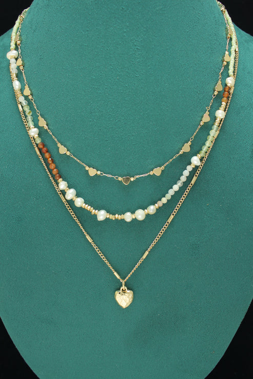 Elevate your everyday look effortlessly with The Sweetheart Trio, a masterpiece of pre-layered perfection that takes the guesswork out of styling. This necklace stack is designed to drape perfectly together so you can achieve a professionally curated, bohemian stack instantly without the hassle of untangling separate chains. This built-in versatility makes it an impeccable gift choice; the romantic heart motifs and the warm, hammered gold pendant convey a timeless message of affection, ensuring this piece becomes a cherished go-to favorite for anyone who receives it.