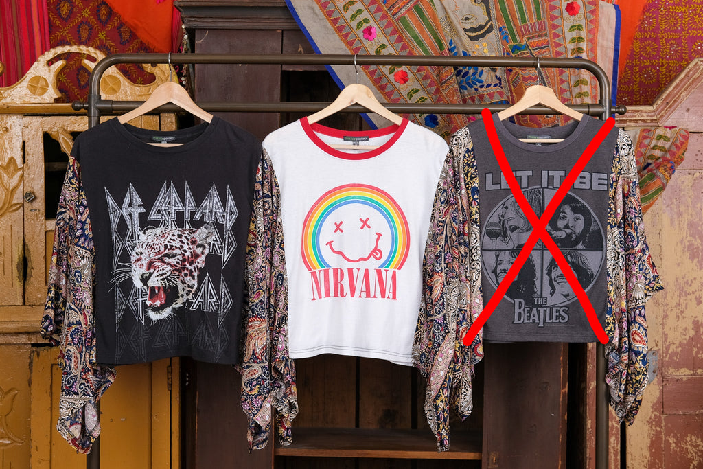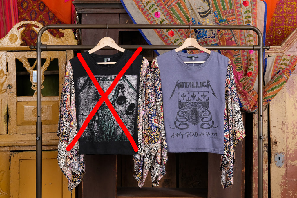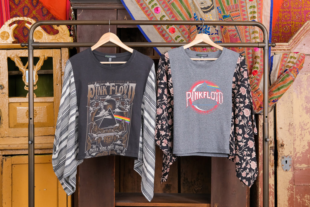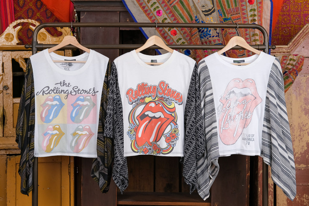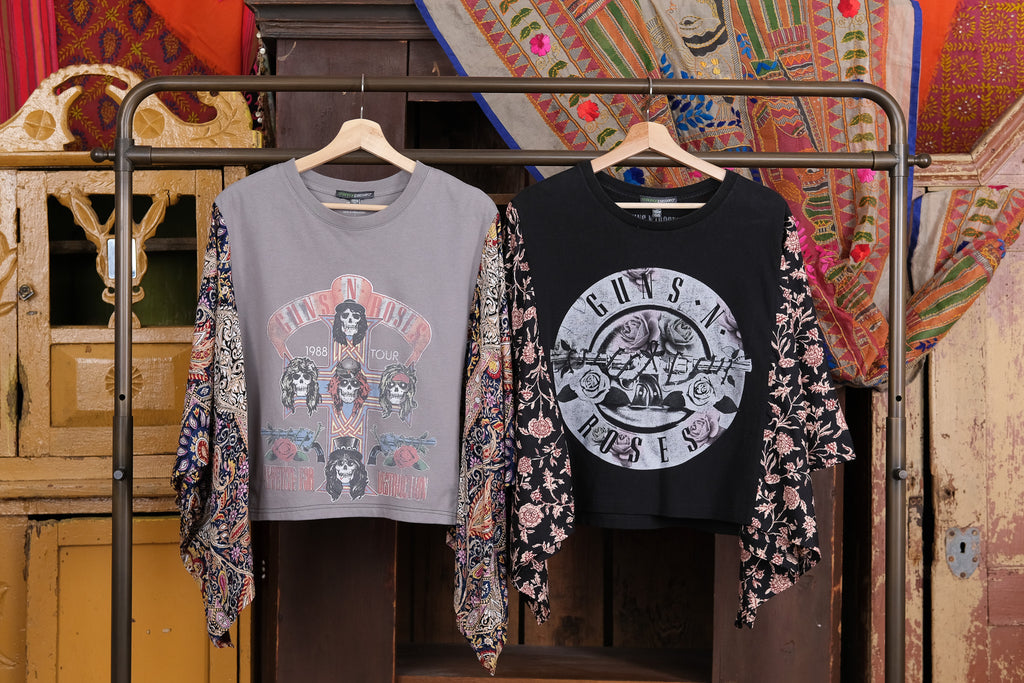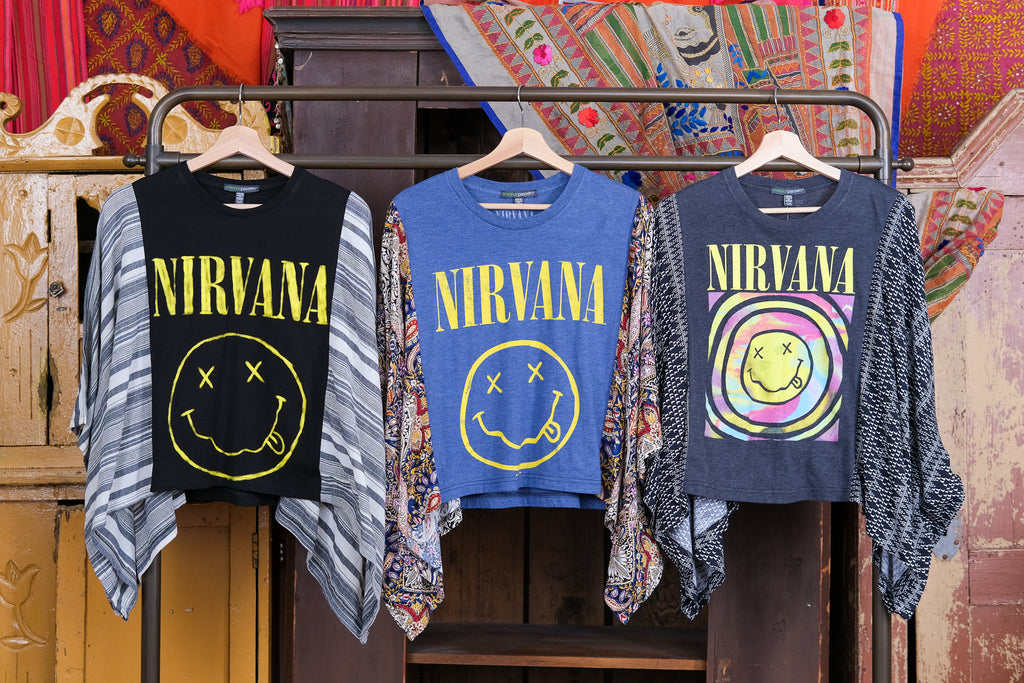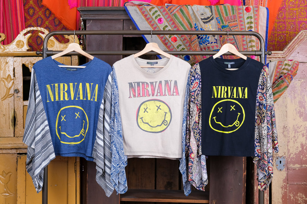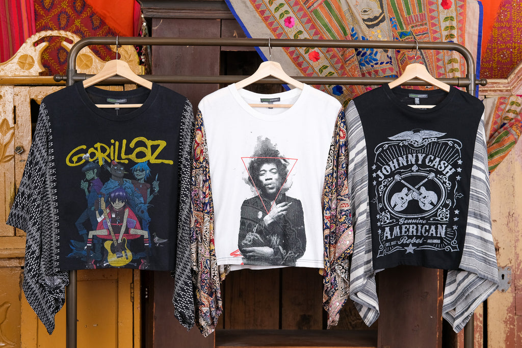 These pieces have been made using upcycled Rock band tees, each piece is one-of-a-kind and designed combining deconstructed vintage denim and upcycled band tees. This diverts it from the landfills and gives it new life.
