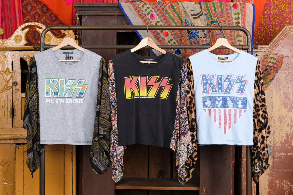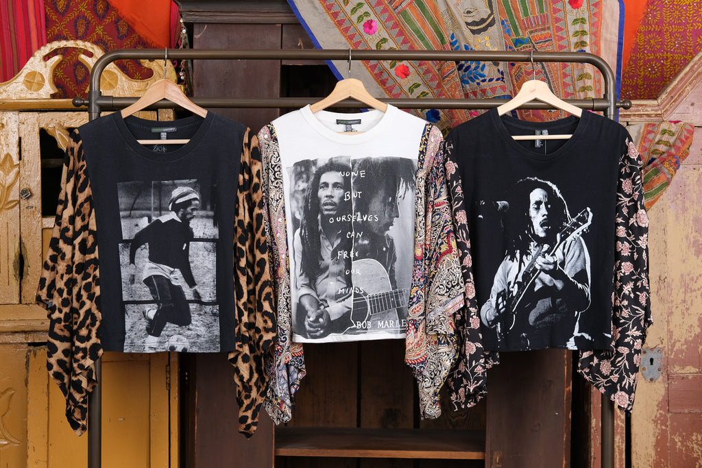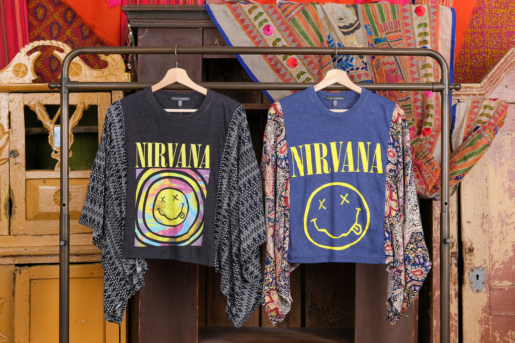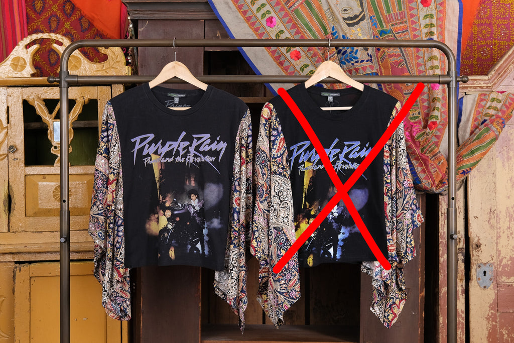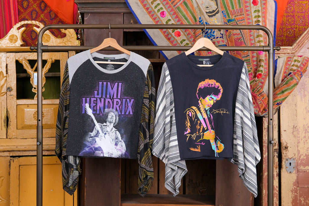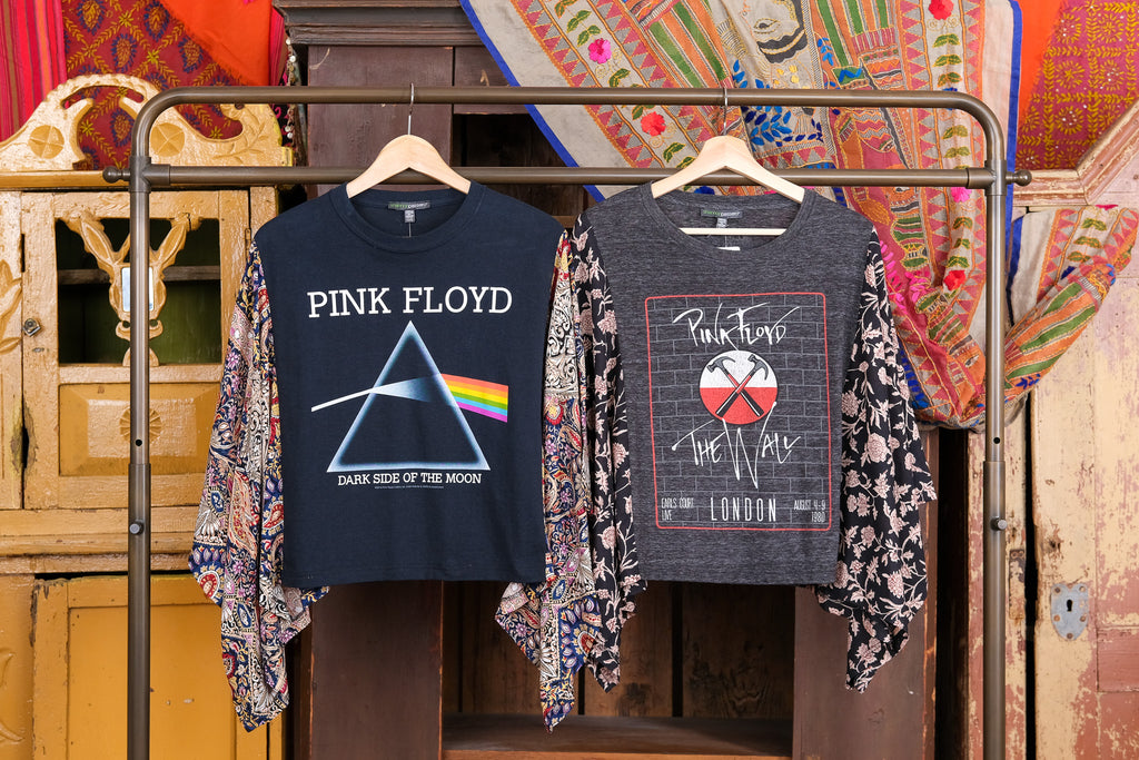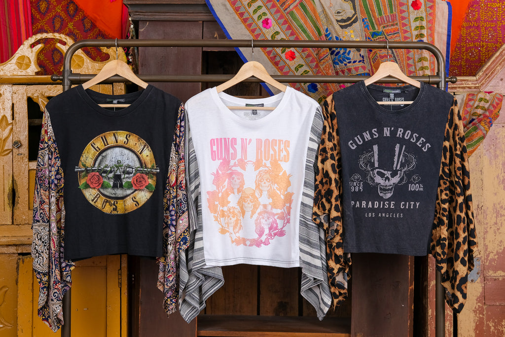 These pieces have been made using upcycled Rock band tees, each piece is one-of-a-kind and designed combining deconstructed vintage denim and upcycled band tees. This diverts it from the landfills and gives it new life.
