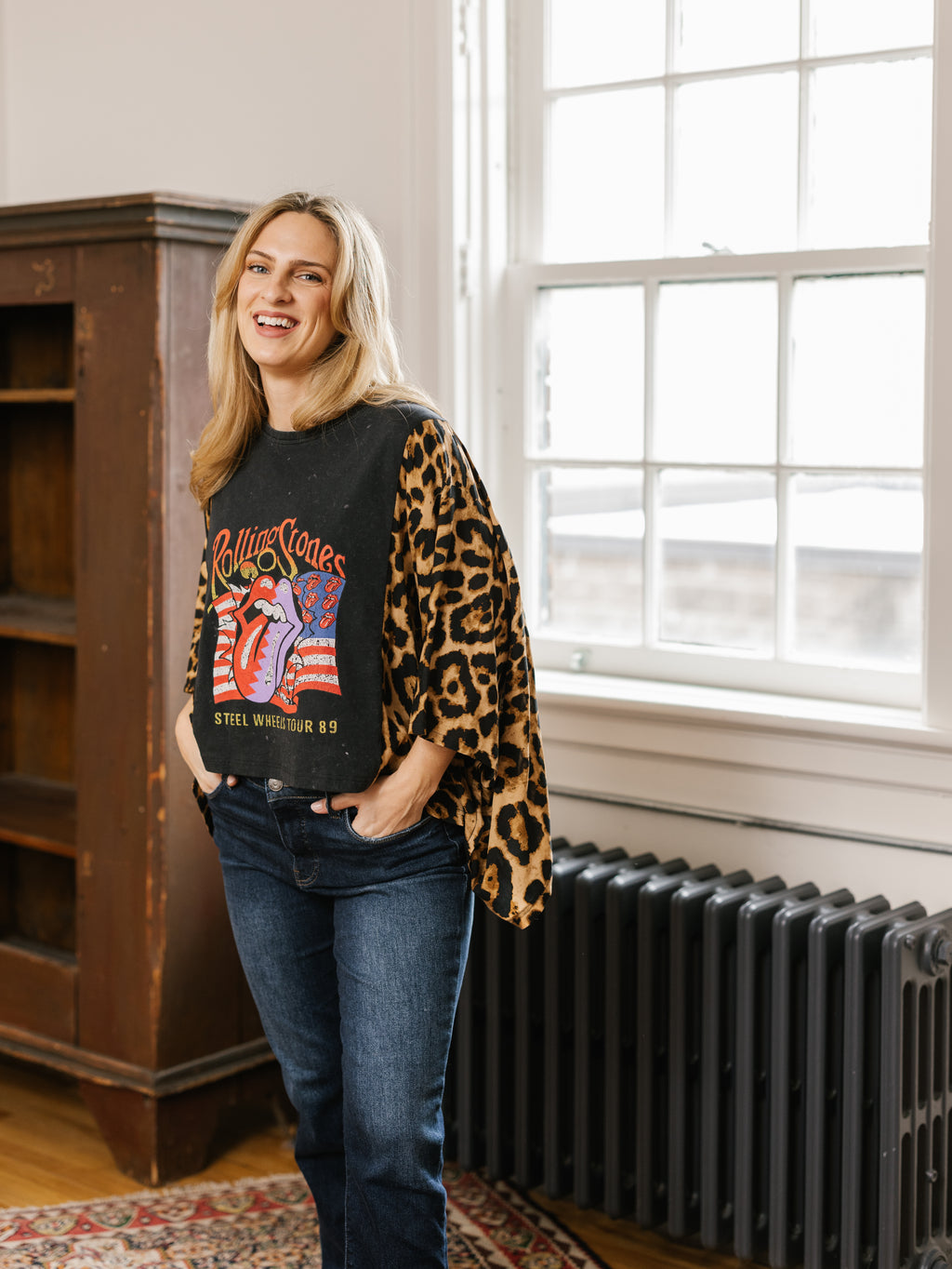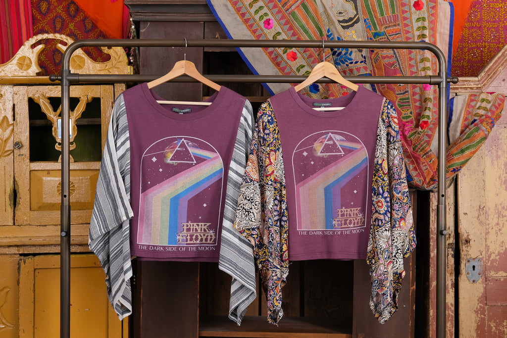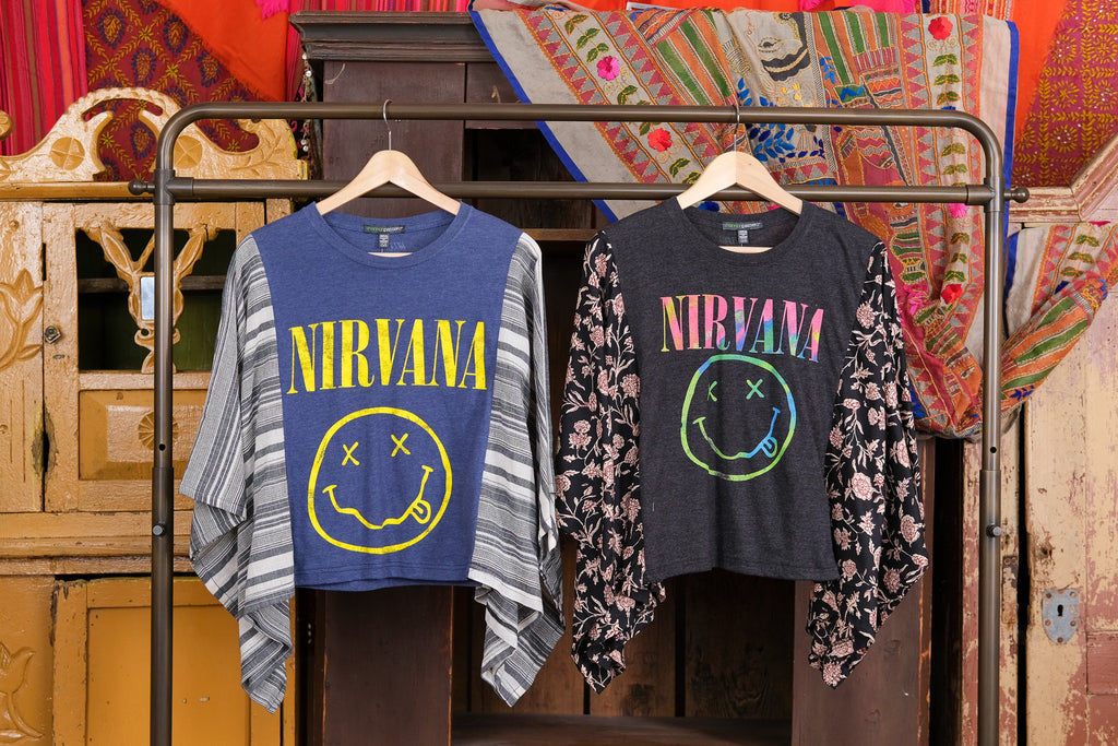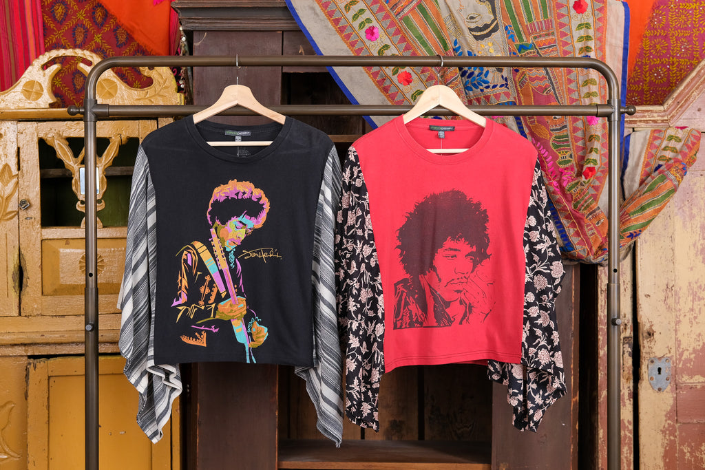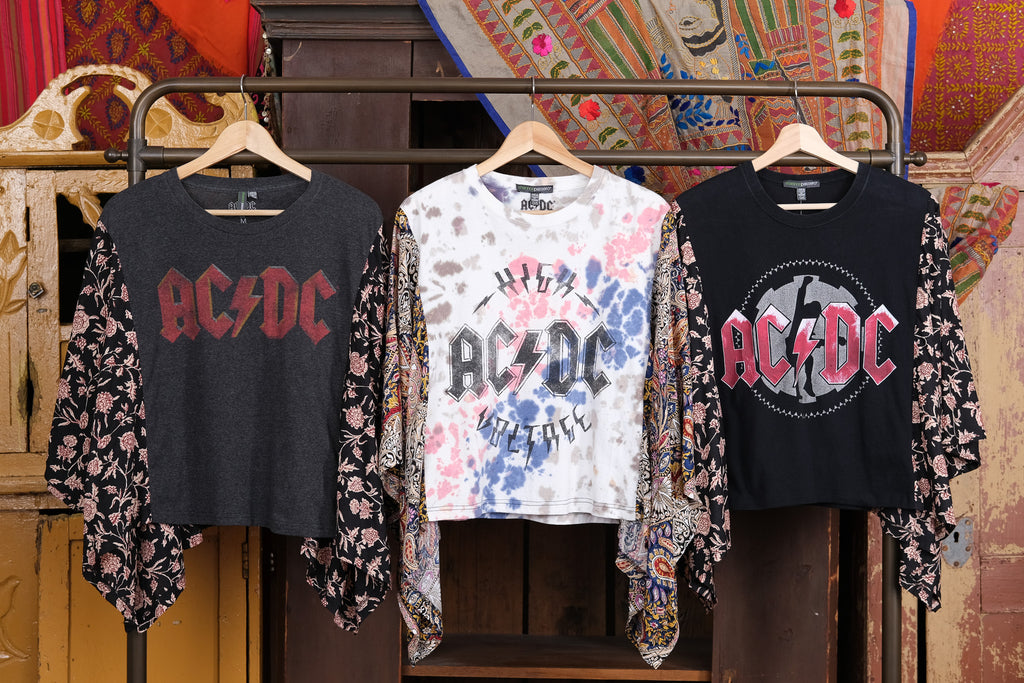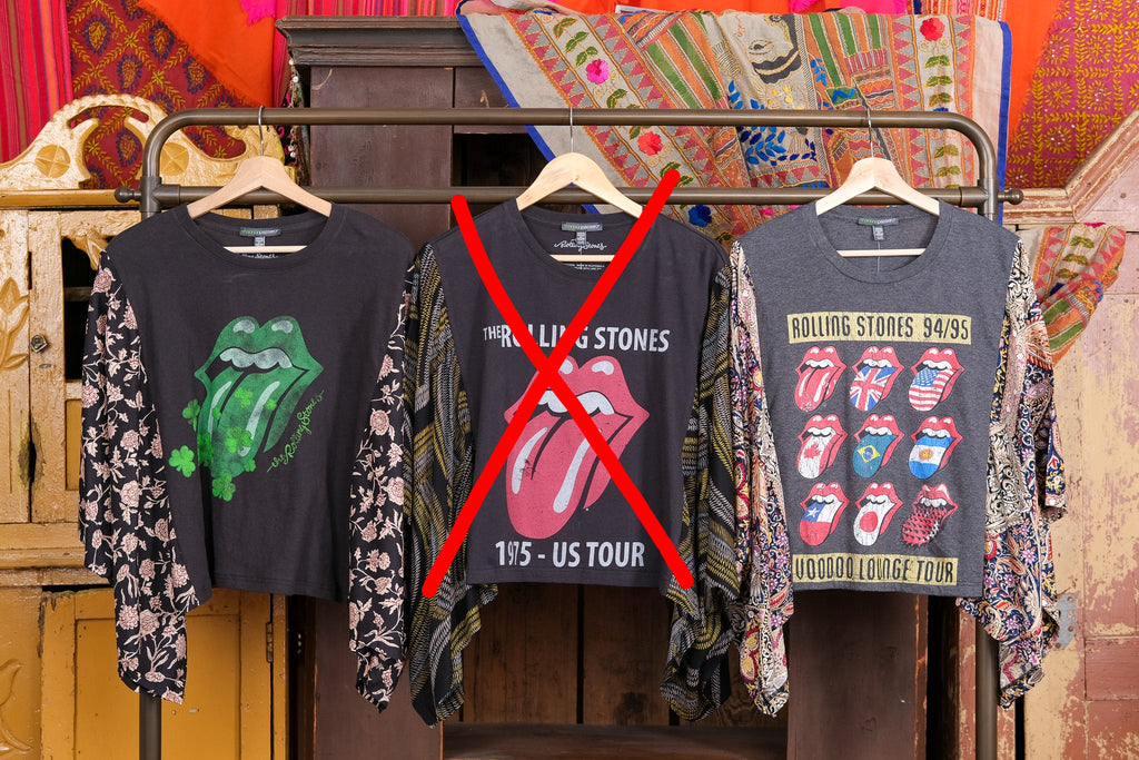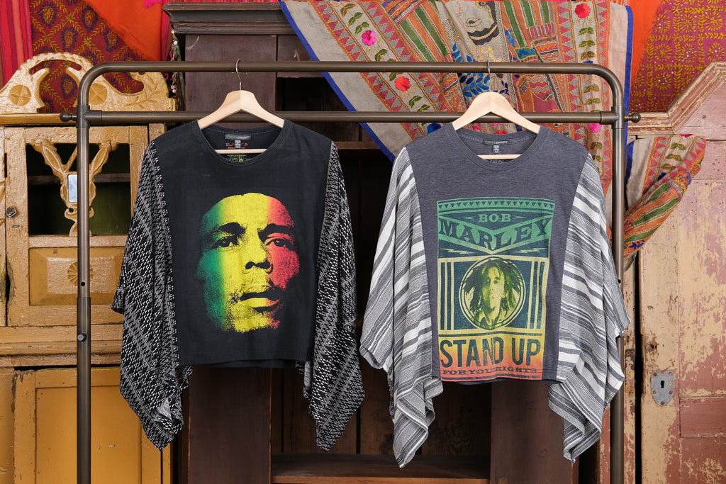 These pieces have been made using upcycled Rock band tees, each piece is one-of-a-kind and designed combining deconstructed vintage denim and upcycled band tees. This diverts it from the landfills and gives it new life.