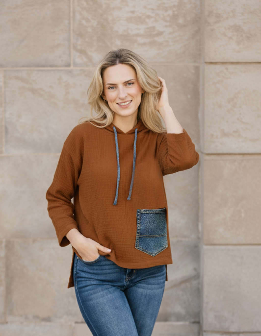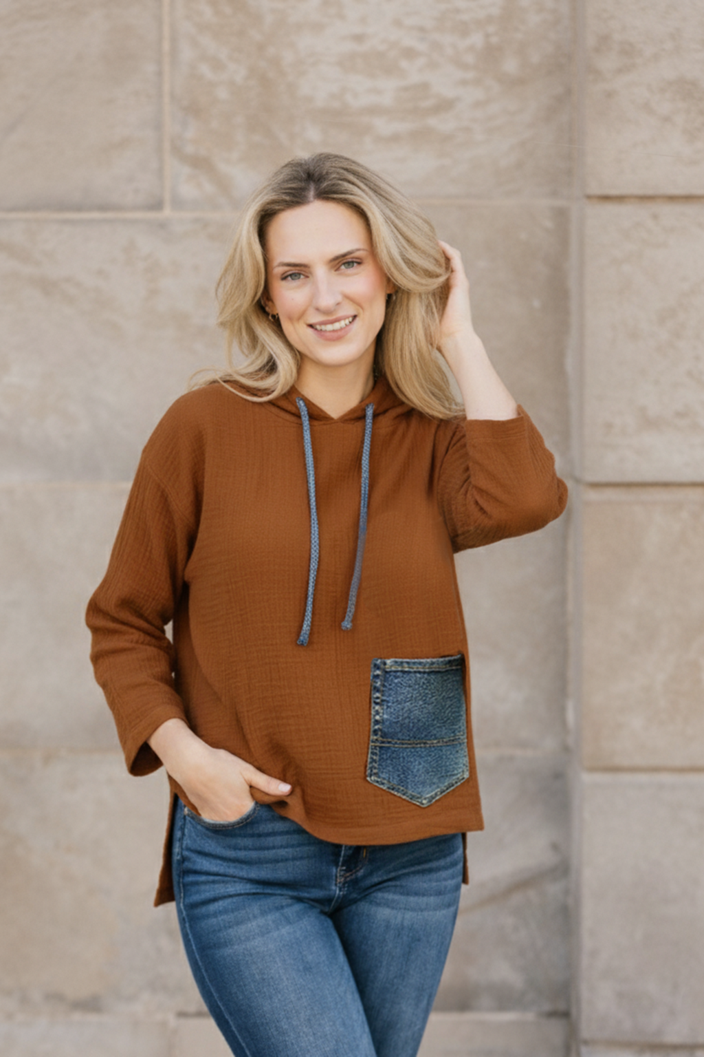 Our Cotton Gauze fabric is made of soft 100% natural cotton fibers, that make it breathable, hypoallergenic and light-weight. It is woven using a special technique that involves twisting horizontal warp threads around the vertical weft threads, resulting in a soft, crinkled, and loosely-woven texture with a slight vertical stretch. We focus on having minimal environmental impact by carefully selecting materials like this Cotton Gauze, as it is a wonderful long lasting material and local to our artisan maker’s region.