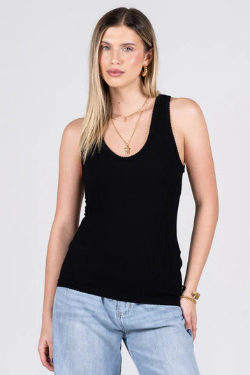 A hip-length scoop-neck tank featuring subtle textured detailing for added dimension.