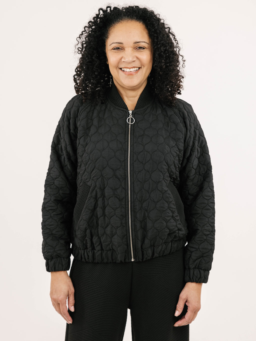 Our modern quilted fabric is versatile and flattering. The patterned quilting is accented with our unique buttons and snaps details making it ready for any occasion. Made with our family run small batch factory in Turkey.