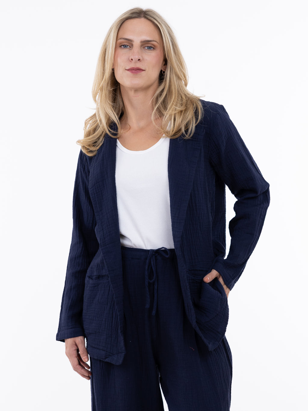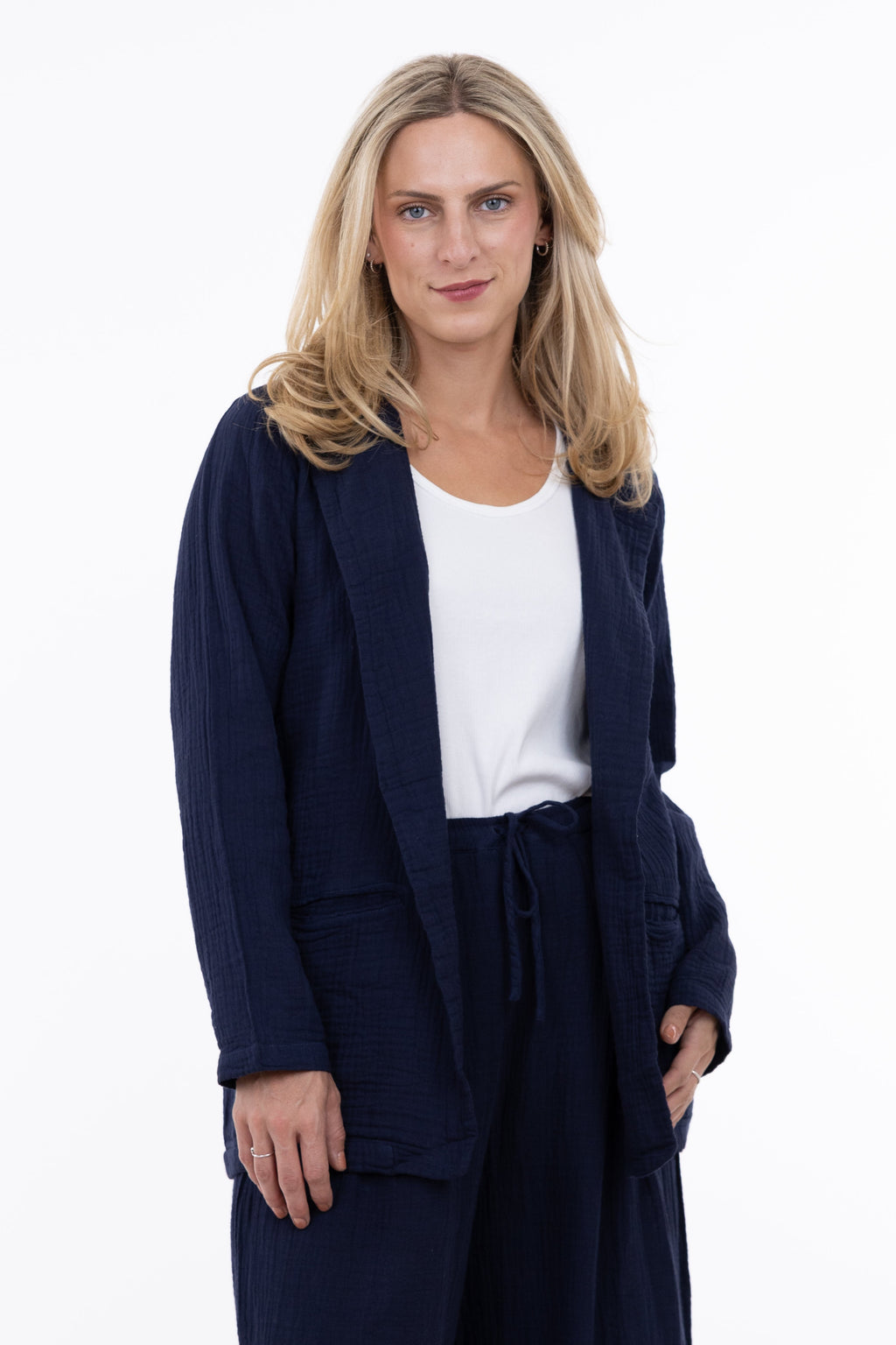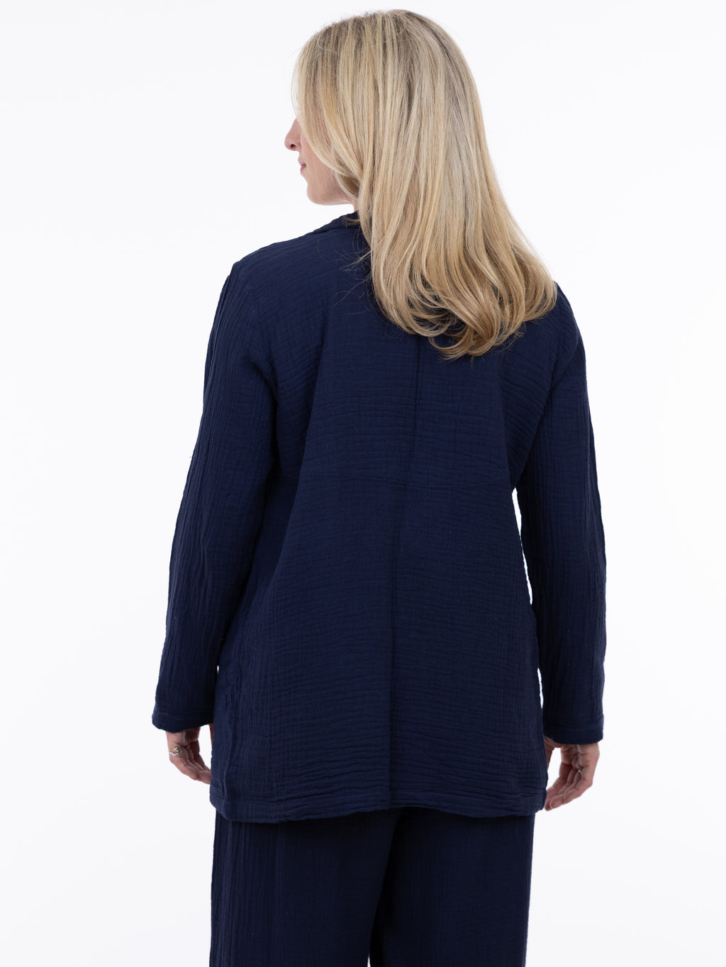 Our Cotton Gauze fabric is made of soft 100% natural cotton fibers, that make it breathable, hypoallergenic and light-weight. It is woven using a special technique that involves twisting horizontal warp threads around the vertical weft threads, resulting in a soft, crinkled, and looselywoven texture with a slight vertical stretch. We focus on having minimal environmental impact by carefully selecting materials like this Cotton Gauze, as it is a wonderful long-lasting material and local to our artisan maker’s region.