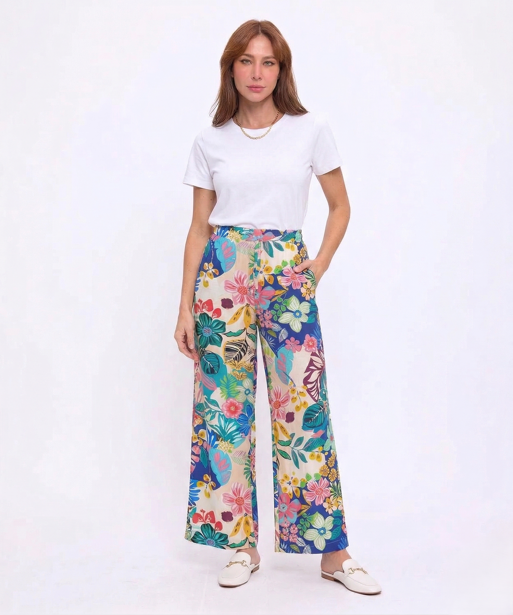 This Wide Leg Pants is the answer to sunny days! They will not only elevate your figure and style with its wide leg design. Featuring a waistband with back elastic, invisible side pockets and new summer prints, no other pair of pants will be your favorite for the season. With the Crepon fabrication, these are both lightweight and airy, keeping you comfortable and stylish for these upcoming months.