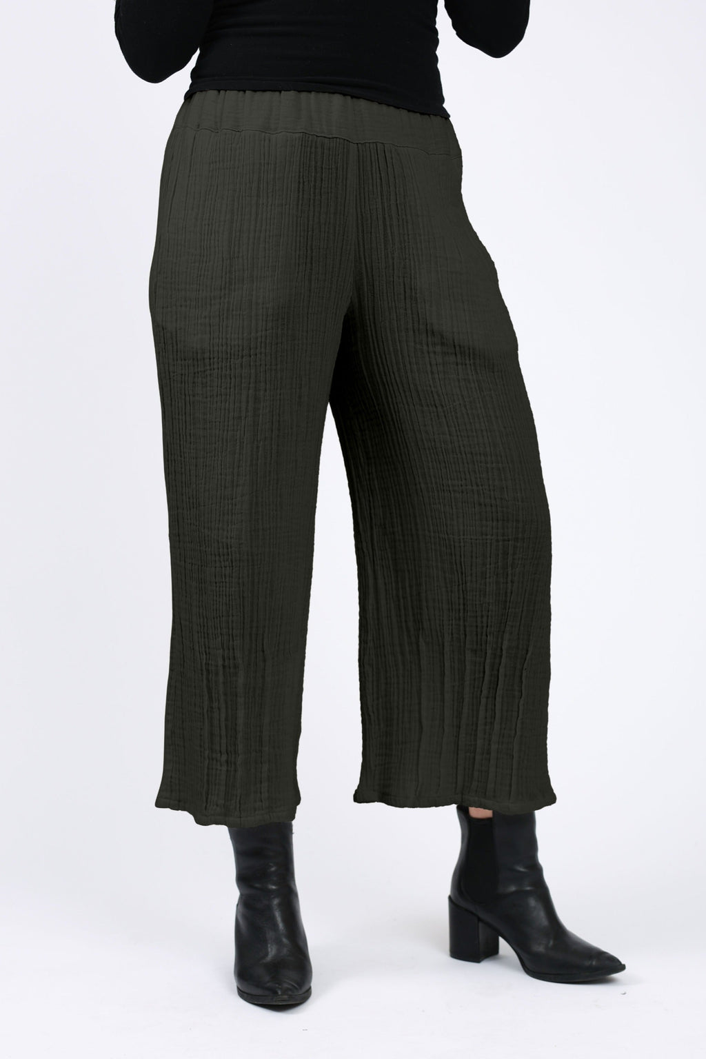 Our Cotton Gauze fabric is made of soft 100% natural cotton fibers that make it breathable, hypoallergenic and light-weight. It is woven using a special technique that involves twisting horizontal warp threads around the vertical weft threads, resulting in a soft, crinkled, and loosely-woven texture with a slight vertical stretch. We focus on having minimal environmental impact by carefully selecting materials like this Cotton Gauze, as it is a wonderful long lasting material and local to our artisan maker’s region.