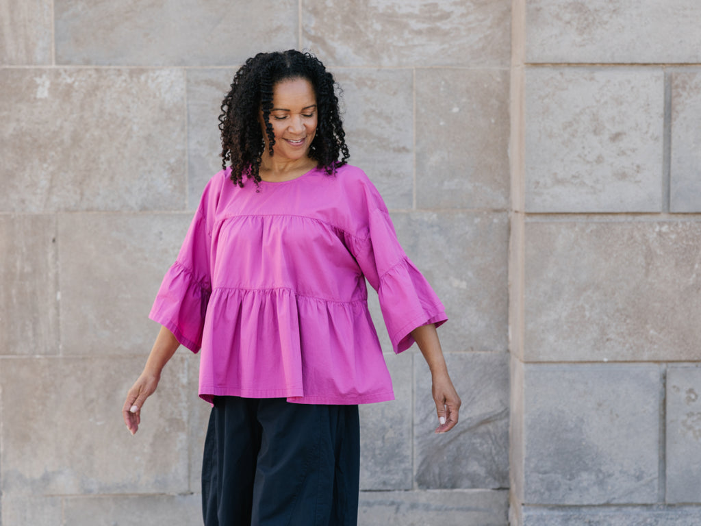Our vibrant cotton poplin is a simple fabric. It is versatile, very breathable with a luxurious hand wash feel that doesn’t lock the heat in. It beautifully holds the colour and can be worn all day and into the night. Each piece has been cut to order and all buttons are sewn on by hand, one by one.