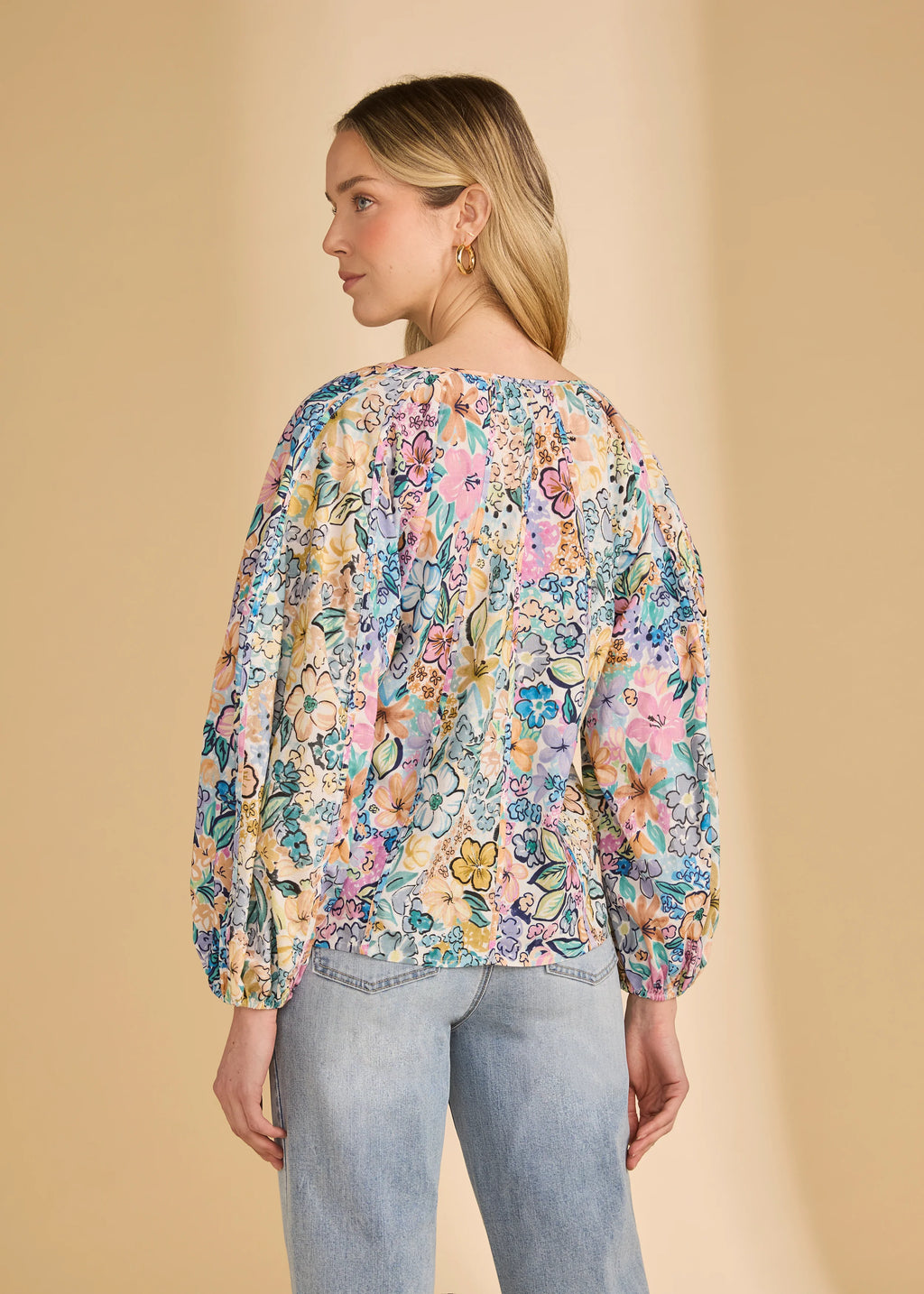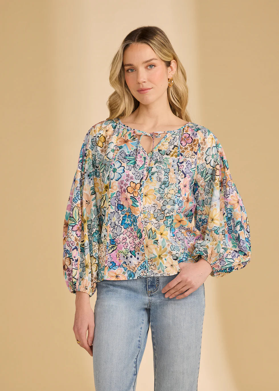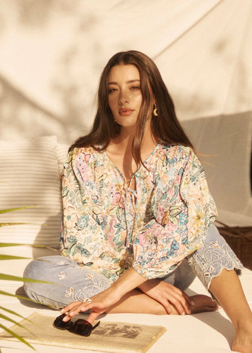 Transform your look instantly with this elegant cotton-viscose blouse, designed for both style and ease. The fluid fabric drapes beautifully, ensuring all-day comfort. Featuring a versatile V-neck, you can choose to wear it open or tied. The gentle puff of bishop sleeves adds a touch of elegance, while the popover design makes it perfect for any occasion, from work meetings to weekend coffee runs.