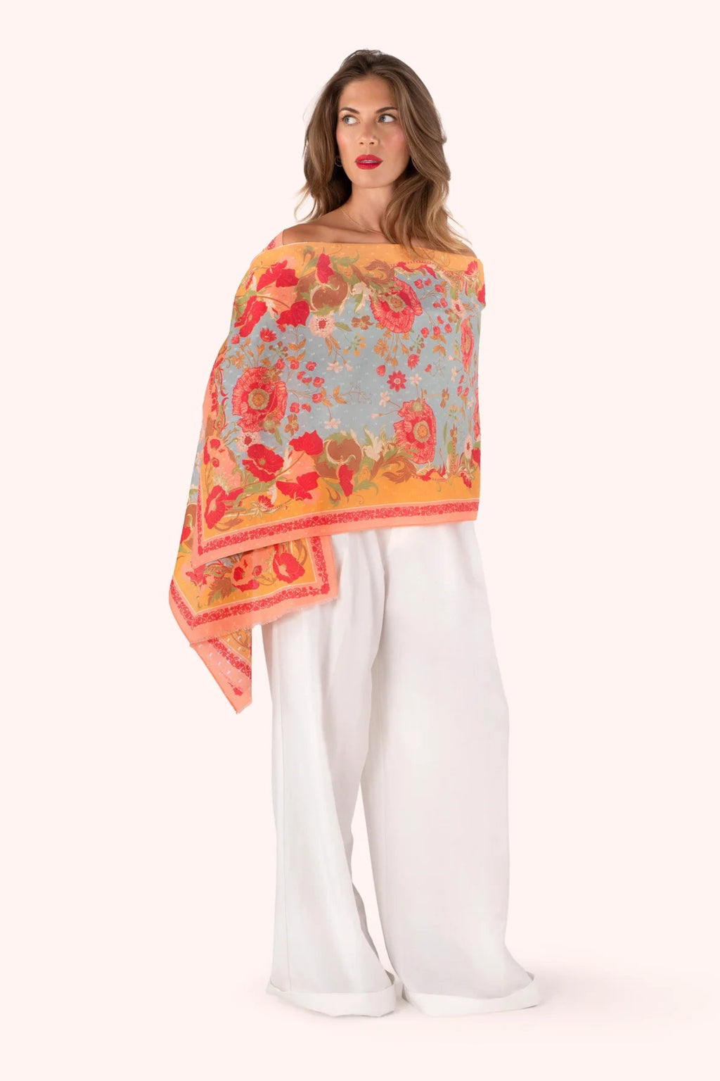 Elegant, refined and simply glamourous! Our Paisley Poppies design is versatile and unique with equal measure. This luxurious cotton scarf channels art nouveau influences whilst staying contemporary to the core. Sure to turn heads effortlessly when worn with your favourite jeans and top combo. Go on, treat yourself!