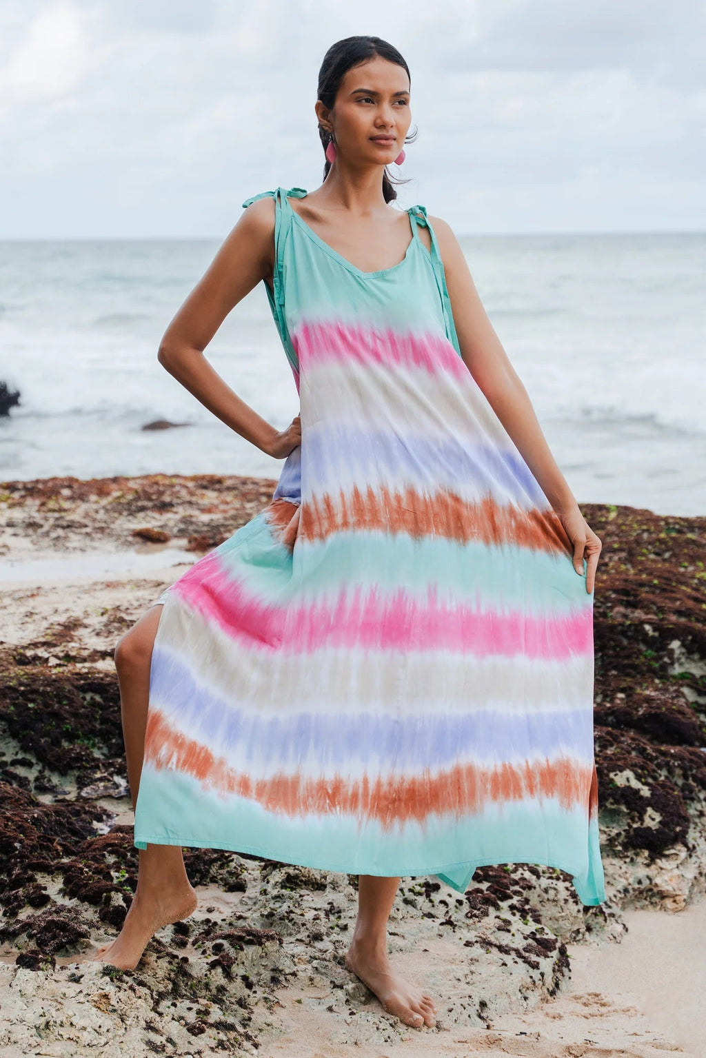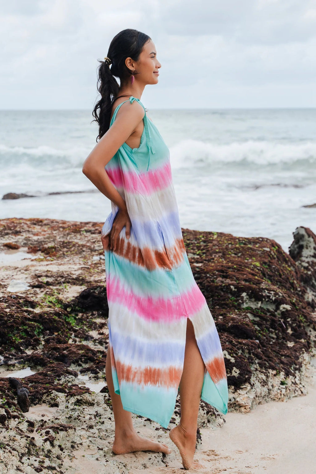 Bring the rainbow to life with this vibrant striped dress that's as fun to wear as it is to look at. Lightweight fabric keeps you cool and comfortable all day long, while the bold, colourful stripes add instant personality to any outfit. Perfect for making a statement without taking yourself too seriously—this dress is ready for adventures, celebrations, or just brightening up an ordinary day.