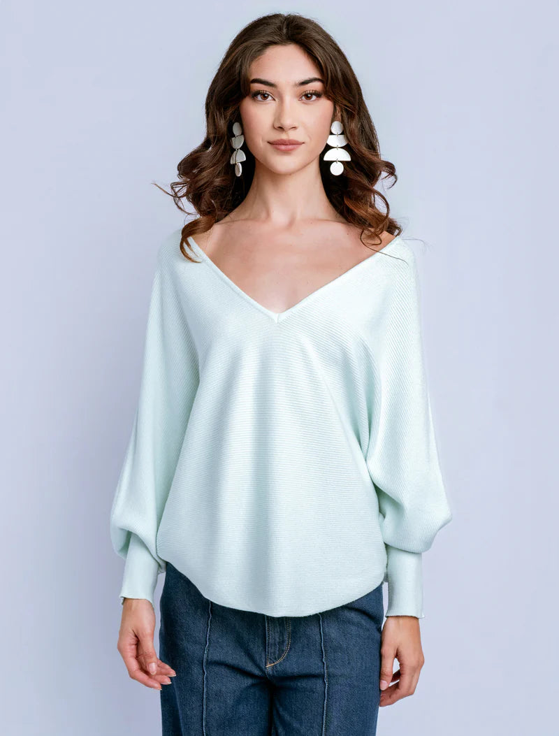 A generous V-neck counterpart to our signature Ryu Boat Neck. Designed to be worn alone or layered over a cami. Slip it off the shoulder for a more relaxed, feminine feel.