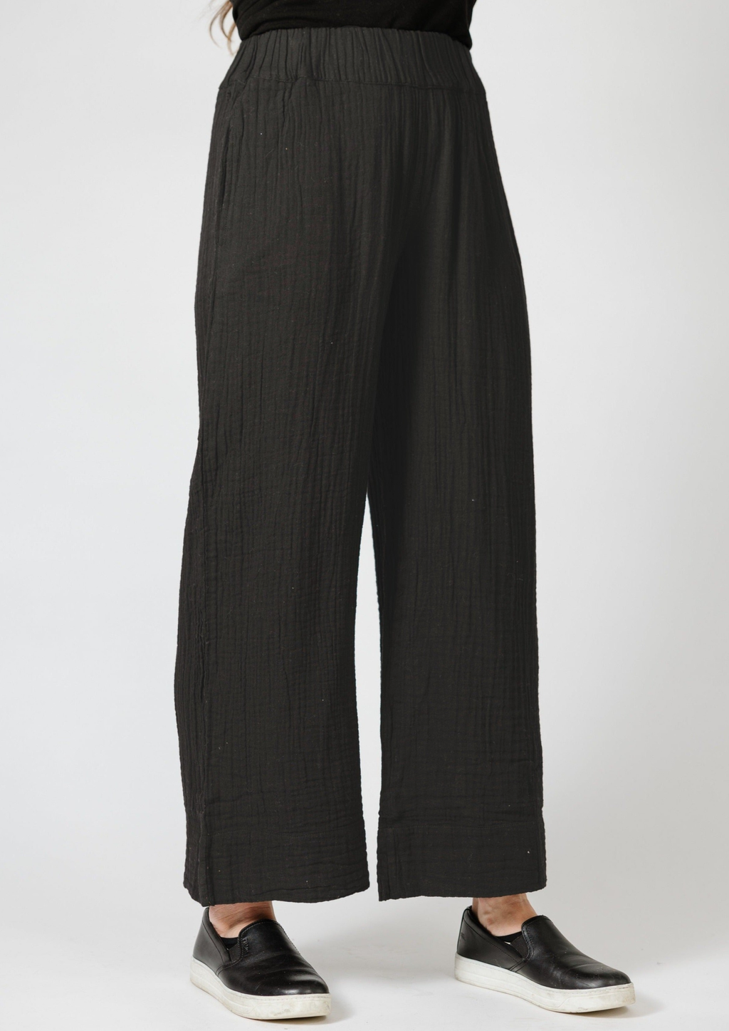 Made of 100% Cotton Gauze fabric, these pants are lightweight, easy for travel and perfect for any occasion. Perfect sinched elastic waist with pockets of course!