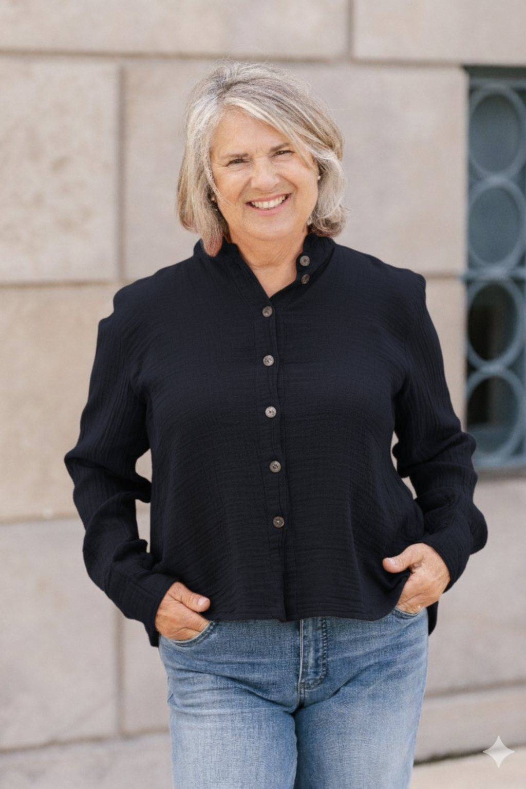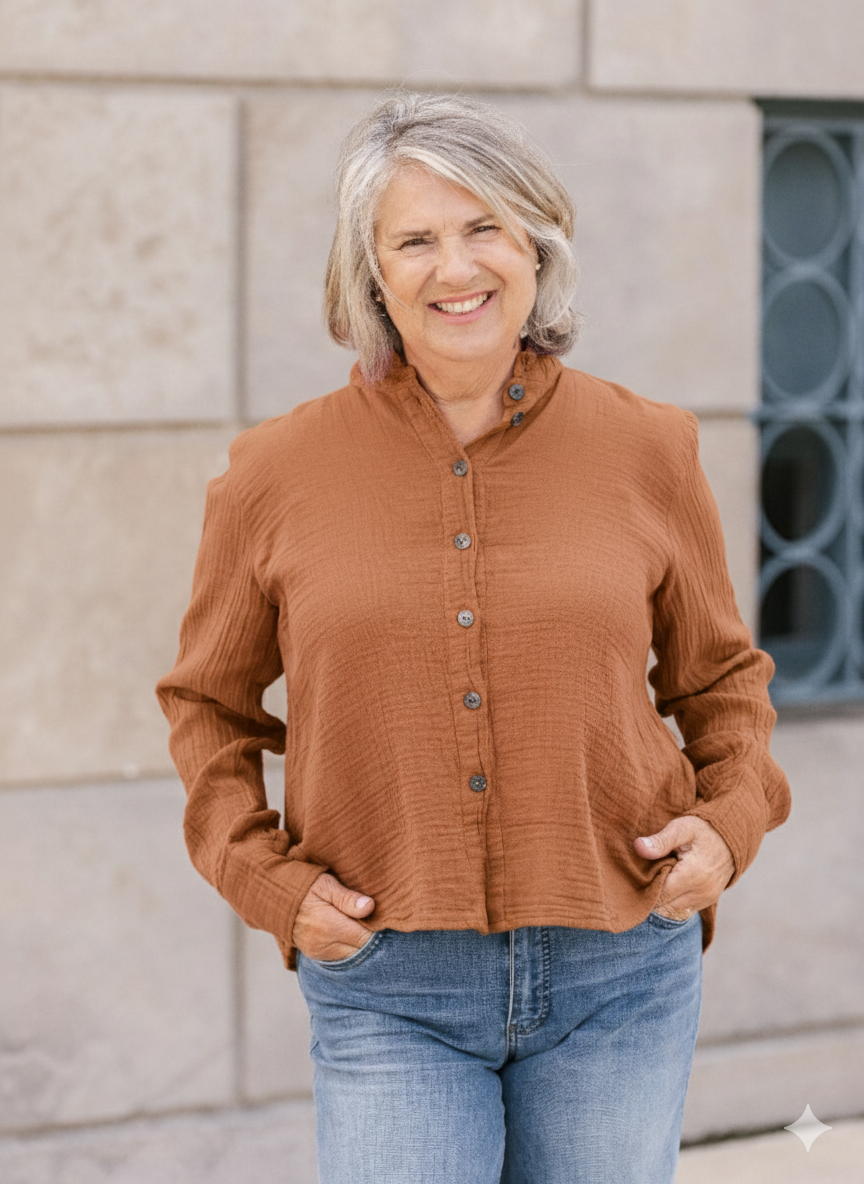 Our Cotton Gauze fabric is made of soft 100% natural cotton fibers, that make it breathable, hypoallergenic and light-weight. It is woven using a special technique that involves twisting horizontal warp threads around the vertical weft threads, resulting in a soft, crinkled, and loosely-woven texture with a slight vertical stretch. We focus on having minimal environmental impact by carefully selecting materials like this Cotton Gauze, as it is a wonderful long lasting material and local to our artisan maker’s region.