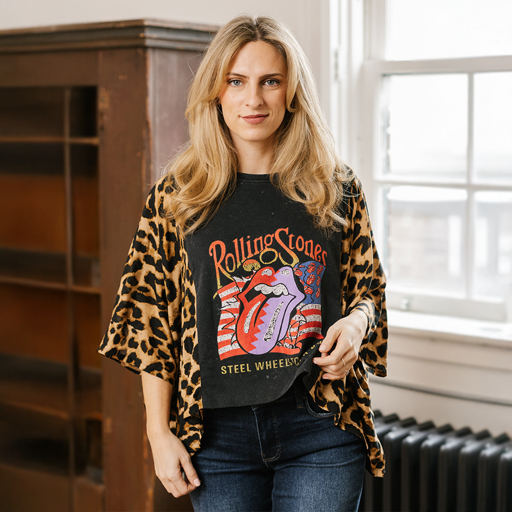 These pieces have been made using upcycled Rock band tees, each piece is one-of-a-kind and designed combining deconstructed vintage denim and upcycled band tees. This diverts it from the landfills and gives it new life.