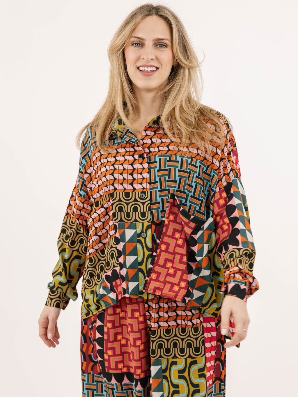 The interesting texture, easy fluid drape and soft hand are exactly why we chose this beautiful bubble crepe to be the backdrop of our inspiring new digital prints. Not only are they bright, inspiring conversation starting prints, our process is a more sustainable option