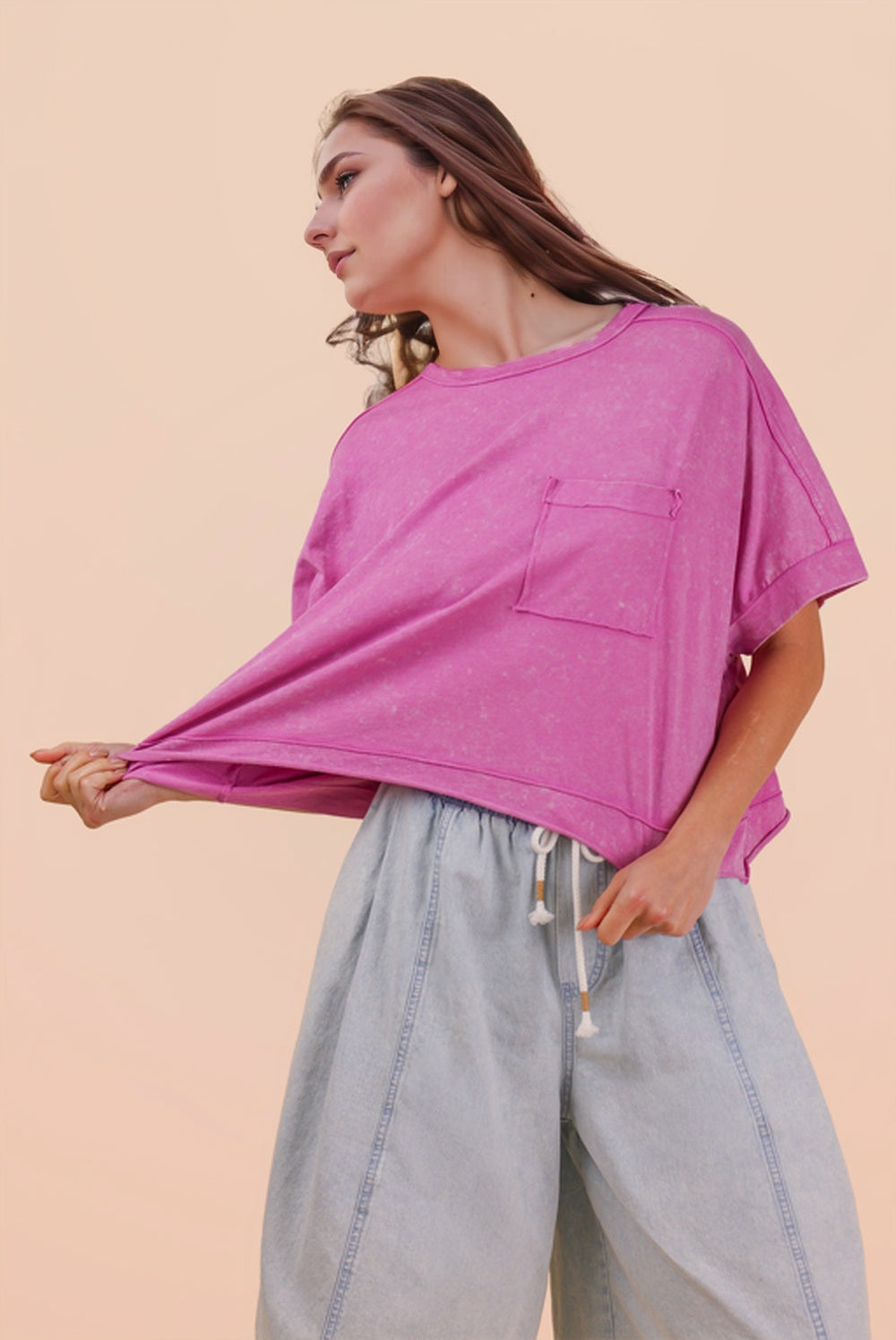 - Mineral Washed Oversized Crop Comfy Knit Top