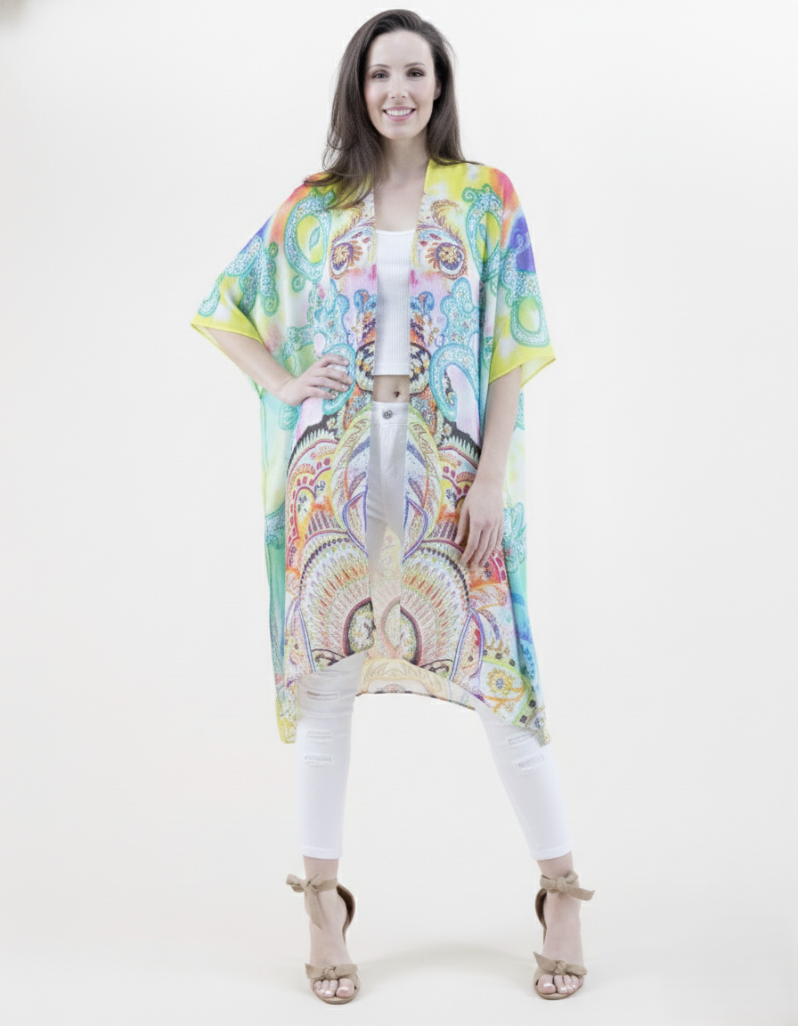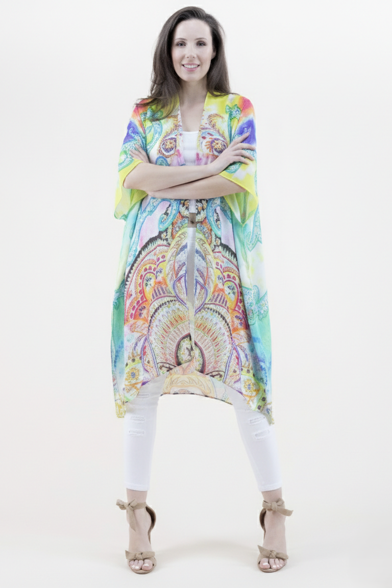 Bright Psycadellic Garden Print- Beach Cover up Kimono