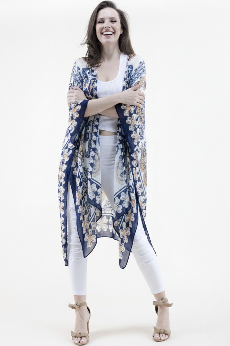 Boho Paisley Flower Border Print Beach Cover-up Kimono