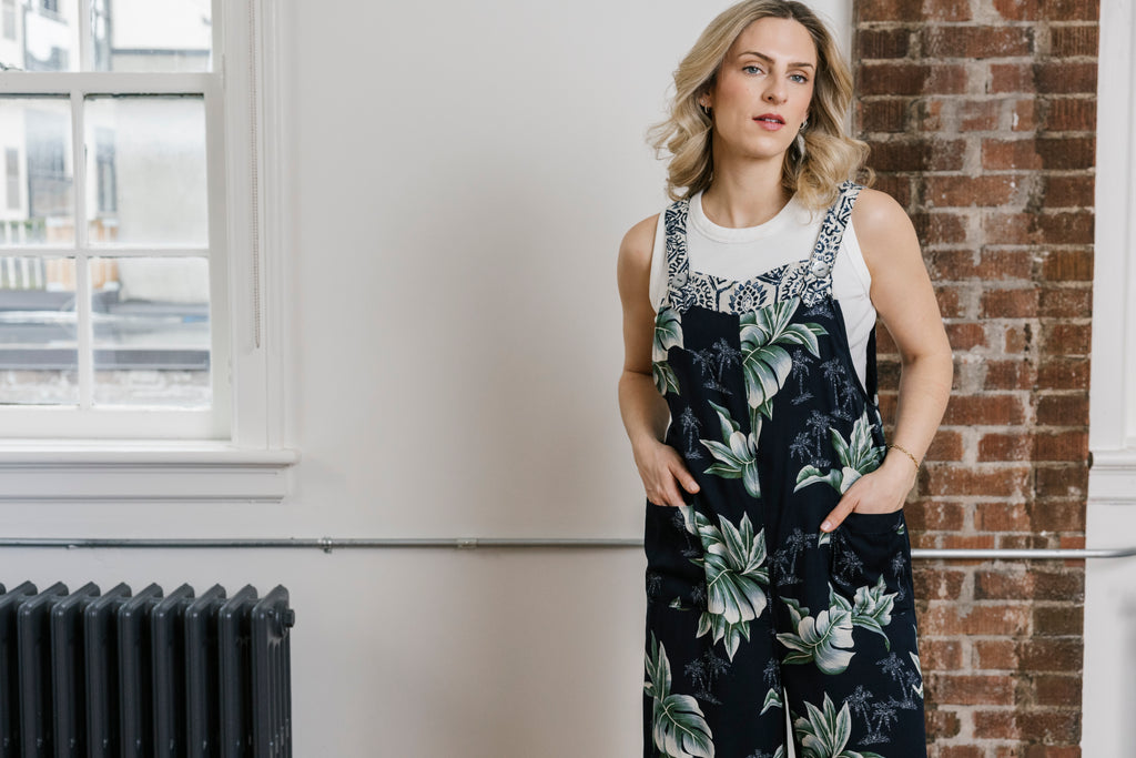The prints are limited runs to be mindful of limiting our fabric waste. We have combined deconstructed vintage denim and upcycled them into many of the designs, this diverts it from the landfills and gives it new life.